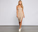 Keep it sleek in this simple and stylish ribbed midi dress. Go for a minimal vibe with this dress that features a square neckline. spaghetti straps. and a high side slit to showcase some leg. The dress features a relaxed fit waist that leads to an at-the-knee midi-length silhouette. The dress is composed of a curve-hugging ribbed knit fabric that offers a moderate stretch. Complete look with strappy stilettos and extra-large hoops to dress up this minimal piece.