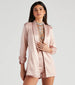 Show off a major sleek and sophisticated style in this woven satin blazer. It features a lapel collar. three-quarter-length sleeves with cinched detailing. shoulder pad accents. and a chic. fitted silhouette. The smooth satin fabric will give your 'fit that luxe look. Pair with the matching trouser shorts and platform heels.