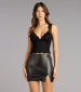 Level up your sleek status with this chic mini skirt made with smooth faux leather fabric to elevate your casual 'fits. It features a high-rise waist. a side slit accent at the hem. and a form-hugging silhouette to highlight your stunning curves.