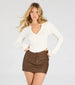 Upgrade your perfect sense of style in this faux leather mini skirt in a flattering bodycon fit that'll put your curves on display!