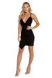 Spend your sleepless party nights in this simple yet sexy LBD! It has a deep V neckline leading to an empire waist seam. spaghetti straps. and a faux wrap skirt creating an asymmetrical hem. Dress has a body-hugging fit and is composed of a ponte knit fabric that offers a moderate stretch.Â