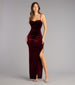 Made to mesmerize. the Sloane velvet column dress exudes understated allure with its sleek draping and lace-up back detail. Designed to hug your shape and glide with every step. it's the definition of soft glam done right.