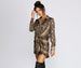 She's all sass and class in this fierce piece! This tunic features pointed collars. a long sleeve bodice. button front and cuffs. an adjustable tie front. and short hem. The tunic is composed of soft satin fabric and offers a relaxed fit with little to no stretch.Â