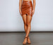 Turn up the heat in this super sexy mini skirt! It's made from smooth faux leather with a ruched front design. Wear it with the matching crop top to dance the night away with the girls.