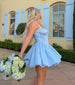 Create a sweet summer look that is oh-so-darling with this drop-waist skater dress. Designed with a lightweight woven fabric. the bodice is accented with a dainty lace trim for a pretty vibe. The short dress features a sleeveless sweetheart neckline. a ruched bust with a small tie-front adjustable detail. and thin tank straps leading to an alluring lace-up back for a customized fit. The asymmetric drop-waist is detailed with pleated side panels. flowing down to a tiered A-line silhouette for a flirtatious look. Style with hoop earrings and a charm necklace.