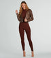 This rib-knit jumpsuit is so essential for lounging or running errands! Featuring a sleeveless halter neckline and a partially open back. this jumpsuit accentuates your figure with its form-hugging. skinny-leg design. Made with soft rib knit fabric. it offers both style and comfort for casual plans. Complete the look in a comfy crop jacket and sneakers.