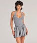 Look and feel fabulous in this sleeveless skater dress boasting a flirty halter V-neckline and a trendy mineral wash on the stretchy rib knit cotton fabric. Complete the look with hoop earrings.