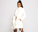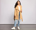 Keep it so fab in a trench coat to create chic layered outfits this season. The trench coat features a lapel collared neckline. long sleeves. a belted waist with belt loops. and side pockets. The trench coat is composed of a fleece knit fabric. Complete look with a ribbed midi dress and ankle booties.Â