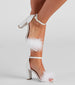 These marabou trim block heels are so fab for a night out! They feature an open almond-shaped toe. a whispy marabou feather trim strap. and an adjustable ankle strap with a buckle closure. Complete the look in a mini dress with a sleek clutch.