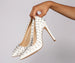 Bring on the glamour in these heels that radiate lots of glitz. The pumps feature mini rhinestones throughout. a pointy toe. and a sleek stiletto heel. The pumps are composed of a faux leather material. Complete look with a curve-hugging bodycon dress.