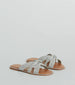 Step out in glitzy style with these rhinestone strappy sandals! Made with faux leather material. they feature an open square toe. a wide twisted strappy design across the foot with rows of mini rhinestones. and a mini rhinestone outline on the flat sole for more sparkle. The open back offers effortless on-and-off styling. Pair these sandals with a fab handbag.