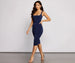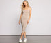 We're so into this dress that can be dressed up for a date night or keep it casual with layers. The dress features a sleeveless square neckline. tank-straps that offer support. and a curve-hugging midi-length silhouette. Complete look with ankle booties or mules.