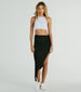 Your social calendar is filling up and this midi skirt is here to help! Featuring a high-rise waist. side adjustable drawstring. and bodycon fit. this skirt will accentuate your curves and flatter your figure. The high-side asymmetrical slit adds a touch of intrigue while the midi-length hem keeps it chic. Complete the look in sandals.