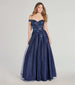 Make your entrance like the princess you are in the Sofia off-the-shoulder glitter ball gown. Designed with a sequin butterfly applique. corset lace-up bodice. and an A-line silhouette. you'll take everyone's breath away!