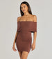 Soft and chic. this mini dress is made with ribbed knit fabric offering plenty of stretch for comfortable wear. It features an off-the-shoulder straight neckline with a long fold-over design for a trendy look and a short bodycon silhouette to highlight your curves.