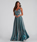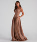 Bring out your glowing beauty with a formal prom dress that mesmerizes from the moment you enter the room! Soleil features a sleeveless V-neckline with adjustable spaghetti straps. padded cups. a bold U-shaped open back design. hidden side pockets. and a floor-length A-line silhouette. The dress is composed of an iridescent woven glitter fabric that offers a flowy fit with a moderate stretch. Complete your prom look with rhinestone heels.