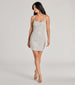 This sleeveless mini dress features a flattering scoop neckline. adjustable spaghetti straps. and a bodycon silhouette. The mesh-lined fabric is embellished with countless rhinestones and faux pearls.Â