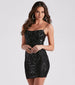 You'll be sparking in this sequin mini dress all night long! It features a sleeveless square neck. spaghetti straps. a bodycon silhouette. and a sexy open back with lattice straps. The lined mesh fabric features an all-over sequin scroll embroidered pattern. Style with platform block heels to complete your dressy look!