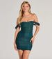 Sparkle in this glitter mini dress designed with an off-the-shoulder neckline and a bodycon silhouette that flatters your figure. Complete the look with heels.