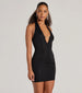 Sparkle Babe Plunge Halter Rhinestone Mesh Mini Dress