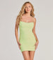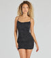 It's your time to sparkle up the night in this iconic rhinestone bodycon mini dress! Designed with a stretchy sheer mesh fabric with a knit lining for coverage. this mini-length dress will have you radiating glamour with the mini rhinestone embellishments accented all over the silhouette. It features a sleeveless cowl neckline for a chic feminine vibe and bungee spaghetti straps that lead to an open back with a cross-back design to add some allure. The ruching down the side seams will accentuate your curves. and the bodycon fit will flaunt your gorgeous figure. Complete your look with rhinestone fringe earrings and platform heels.