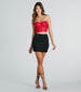 Step under any light and this rhinestone mini skirt will give off a spectacular shine! It features a flattering high-rise waist and bodycon silhouette. a mini-length hem. and sparkly rhinestone embellishments on smooth ponte-lined fabric. Complete the look with a going-out bustier and heels!