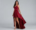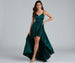 Get a gorgeous look and have all eyes on you in the stunning and sleek Spencer satin dress! She features a sleeveless bodice. adjustable spaghetti straps. a V neckline with padding. and a back zipper and hook and eye closure. Her high waist seam flows out to a high-low skirt and includes a mini-length woven lining. Complete your outfit with rhinestone earrings and new heels.