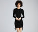 Achieve that trendy sporty babe look with this casual ribbed knit mini dress. It features a hoodie. a high neckline with front drawstrings. long sleeves. ruched side detailing. and a short. curve-hugging silhouette. Style this dress with cute sneakers.
