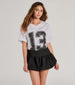 This sporty graphic tee features a V-neckline. short sleeves. a "13" faded front graphic. and the perfect oversized fit. Style with a mini skirt and sneakers for game day!