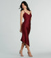 You'll love every moment in the spotlight wearing this sleeveless midi dress at parties and date nights! Boasting a surplice V-neckline and spaghetti straps. this bodycon dress accentuates your curves for a flattering look. The asymmetrical midi hem adds a touch of elegance. making it a must-have for dressy occasions. Complete the look with a clutch. heels. and earrings for a flawless finish!
