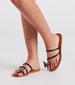 Spread your wings and have fun with your fashion in these flat sandals featuring a jeweled butterfly charm. round toe with a thong-style strap. and dual foot straps on faux leather material. Complete the look with a ring set.