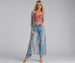 Florals for spring! Level up your outfit in this long sleeve duster featuring an open-front. longline hem on sheer. mesh knit fabric with a moderate stretch. Complete the look in a lacey bralette and jeans.