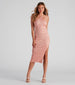 The cooler spring days call for your best knits! Set the tone in this halter midi sweater dress featuring a sleeveless high neck. adjustable spaghetti straps. space-dye knit pattern. bodycon silhouette. and a side slit accent to showcase some leg. Complete the look in cute mules.