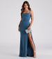 Your divine beauty will stun in the Stacie formal dress to make your entrance as a bridesmaid or arrival to a dinner banquet! She features a sleek and sleeveless cowl neckline. spaghetti straps. a high-waist seam. and a skin-flaunting high-cut front slit along her flowy. a-line silhouette and floor-length hem. The formal dress is composed of a slinky knit fabric with a sewn-in knit lining and plenty of stretch. Style with rhinestone platform heels and a clutch to complete your dressy look!