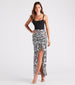 Standout in this stylish swirl print maxi skirt on vacation or sitting poolside at a party! The skirt features a flattering high-rise waist. a curve-hugging silhouette. and a front ruched drawstring atop a flirty high slit along the maxi hem. Complete the look in a basic tank top and sandals!
