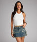 Your denim skirt just got a cosmic upgrade. With a drop waist and trendy star patches. this mini skirt is perfect for vibing at festivals and chilling at parties.