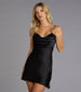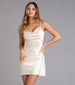 All about the shine—this satin mini dress stuns with a draped cowl neckline. rhinestone trim that sparkles with every step. and a swingy A-line silhouette that keeps it playful. Perfect for bridal celebrations. cocktail receptions. and birthday dinners.