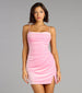 Cue the shimmer. This glitter velvet mini dress brings the drama with a cowl neckline. flirty slit. and pleated seams that hug just right—your new party dress for nights that need extra sparkle.