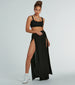 The statement has been made when you step out in this maxi skirt on vacay or at a pool party! The breezy knit skirt boasts a flattering high-rise elasticized waistband. a built-in cheeky lining. dual high front slits to bare some skin. and a flowy maxi-length hem. Complete the look in a flirty tie-front top and sandals.