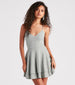 Steal the spotlight and cast a lovely glow in this glitter skater dress perfect for capturing a twirl-worthy moment! It features a sleeveless. v-neckline. spaghetti straps that lead to a criss-cross back. a high waist seam. and a double-layered hem. Complete the look in lace-up heels and a clutch.