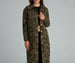 Step up your casual style with this cute long line camo jacket! It features a collared neckline. long sleeves. a complete button-down front. buttoned chest pockets. distressed detailing. and a long line relaxed silhouette with a frayed hem. Layer this jacket over a mini dress and complete the look with booties.