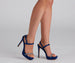 Stun people with your glam feet. Elevate your look in these rhinestone strap stiletto heels featuring an almond toe. platform sole. quilted footbed. and an adjustable buckle ankle strap. Complete the look in a chic clutch.