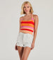 Own this striped knit crop top all season! It's perfect for flaunting your figure with a square halter neckline and fitted crop hem. The striped pattern on the ribbed knit fabric gives it a trendy vibe. Complete the look in denim shorts for a summer fair or BBQ.