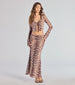 Perfect your vibe with the strut it out abstract zebra maxi skirt. This sheer mesh beauty flaunts a zebra print and mid-rise waist for a fierce look. Pair it with the matching top for ultimate style.