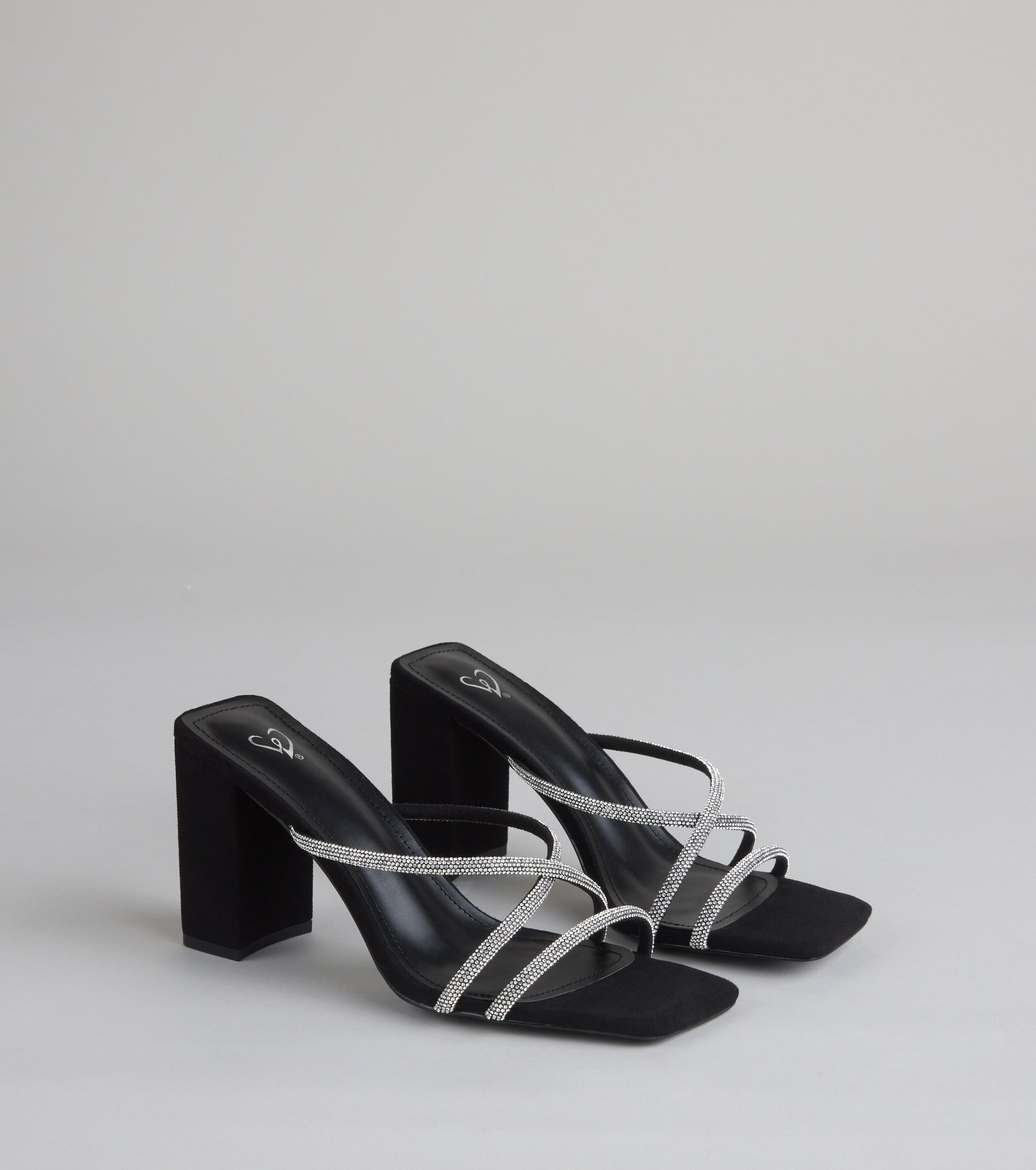 These heels didn't come to play—they came to shine. With sparkly straps and a sleek-block heel. they're your new go-to for dressing up!