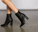 Strut with style this season in these fashionable ankle booties! They feature an on-trend pointed toe. an inner zipper closure. and a tall block heel. Pair these sleek faux leather booties with a corset top and skinny jeans for a casual and chic night-out look.