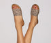 Add some studs to your style with these chic sandals! The sandals feature an open back. an open almond toe. a wide strap over the toe. and studded nailhead trim. Complete look with a bodysuit and high waist jeans.