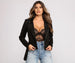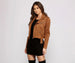 Stun on em' with a trendy moto jacket that slays! The jacket features a collared neckline with stud detailing. an asymmetrical zipper front. a small faux pocket accent. side pockets. and a belted hem. The jacket is composed of a faux suede fabric that offers a form-hugging fit. Complete look with a bodycon dress and thigh high boots.