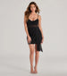 This rhinestone mesh mini dress features a sultry pleated V-neckline and adjustable spaghetti straps for a custom fit. The corset-style bodice flaunts the bodycon mini-length silhouette perfect for pairing with stiletto heels.Â