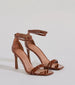 • Bronze heels are patent faux leather